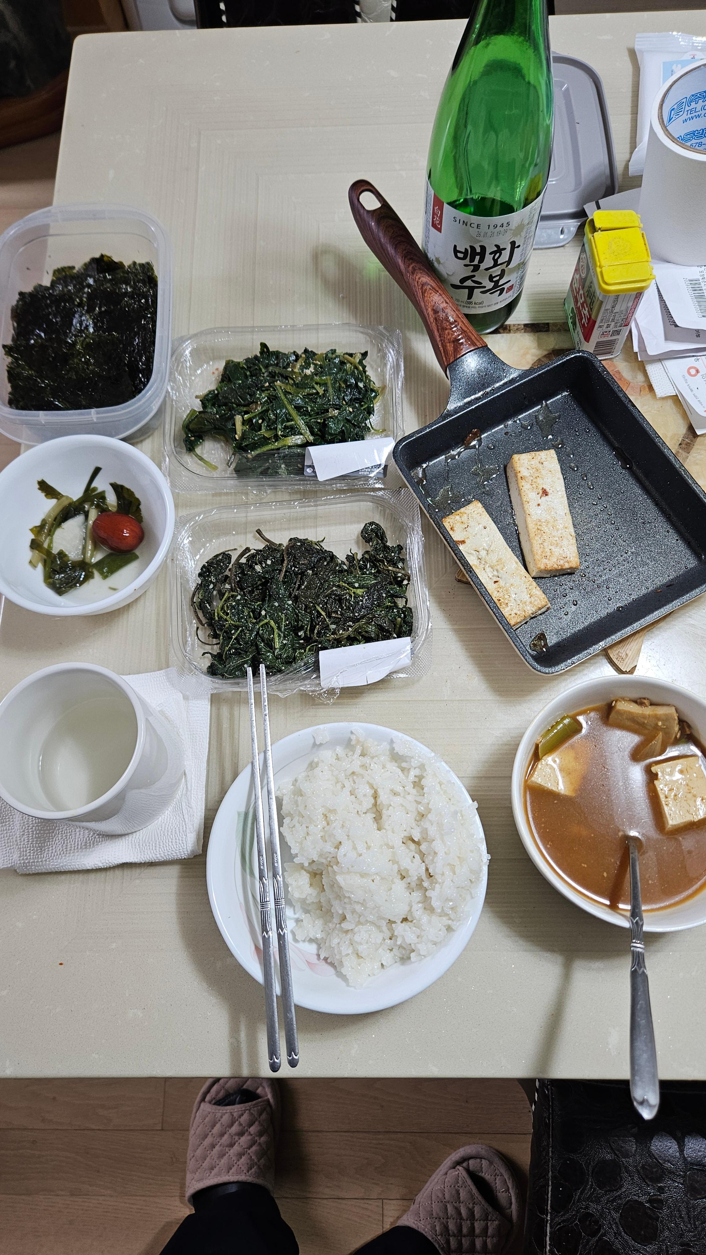 저녁은 버섯 된장찌개로.. 음식들 다 비우고 정리하고 가야 되요. 내일이면 한달이상 집을 비우게 됩니다. 신의 가호가 있길 ㅎ